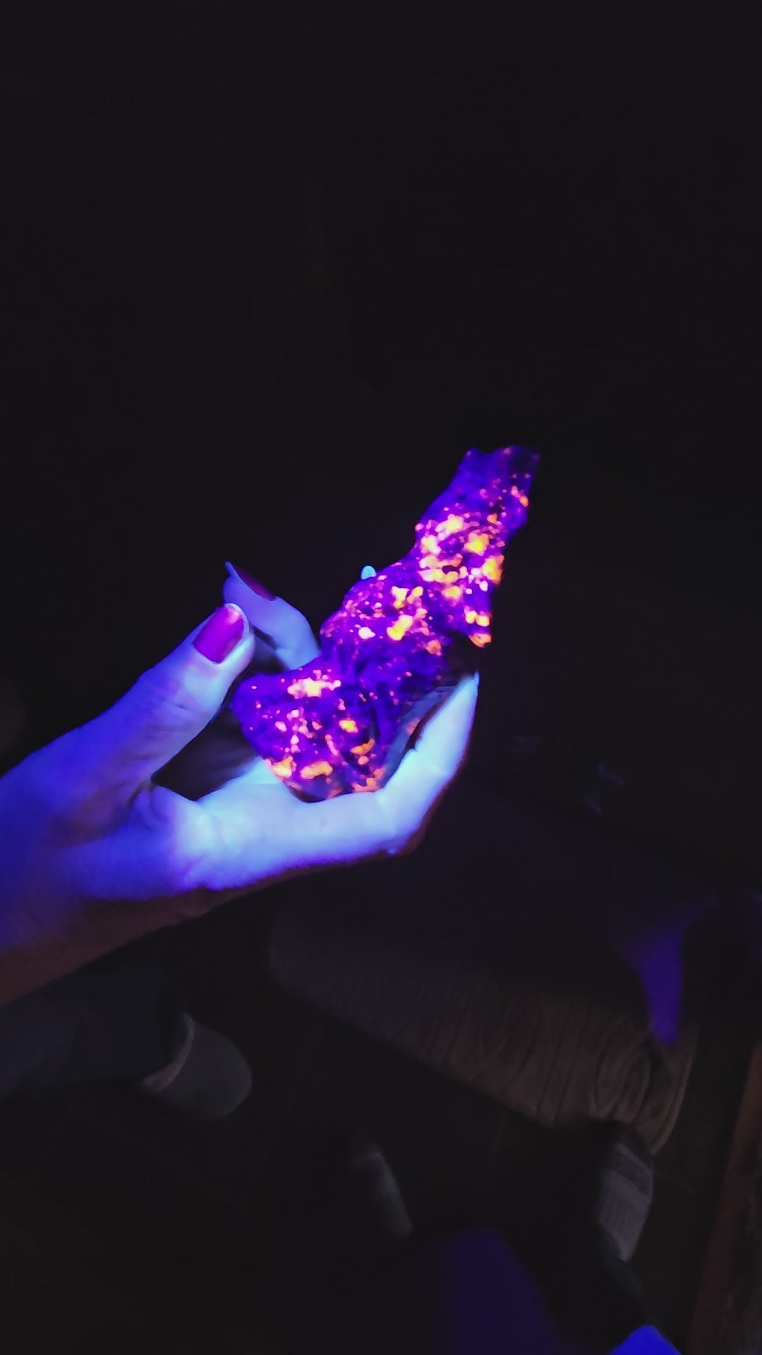 This extraordinary yooperlite wolf makes an exceptional addition to any crystal collection, meditation space, or altar, offering both stunning natural beauty and powerful truth-revealing energy with magical fluorescent properties.